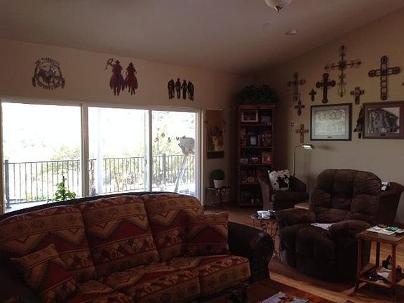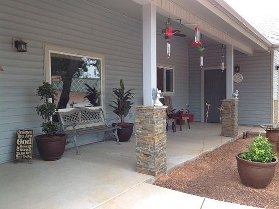 Imagine having a 2.5 acre VIEW parcel in town, but private! Horses are welcome here & T.N. Forest access only 2/10 mi away. One level, no maintenance vinyl exterior home with all the goodies; granite tops in kitchen & baths, wood floors, tile, carpeted guest room & closets.Custom cabinets, walk in pantry, tiled showers, office, utility room, vaulted ceiling great room, 60' trex deck,+ covered patio.Over-sized garage has pull-down attic stairs for storage, water softener, 50 gal water heater. Extra foam sprayed in attic ($10,000) keeps utilities low. Fans installed in all rooms & both porches. Carport & lots of room for RVs, boats, gardens,chickens, horses & dogs. Reverse osmosis water, piped gas to bar-bq, skylights.See extras, plat & SPDS in private remarks. Private Rem