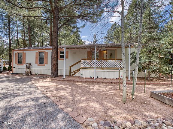 Charming and cute home on a large corner lot with tall pines, neatly maintained with circular drive. Inviting, clean and very well maintained manufactured home, with 3 Bedrooms and 2 baths. Clean and well kept, with new water heater, chip seal on driveway, and new kitchen and bath flooring in 2024, as well as a new dishwasher and garbage disposal in 2023. Large storage room off back deck.