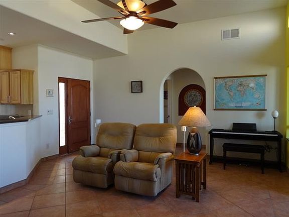 RVers Retreat in Deming, NM that will be nice to come home to. 2 Bedroom, 2 Bath with open floor plan, high ceilings, tiled floors. A great ktichen with duel fuel range, wine bar, dining area, pantry, ,computer room, upgraded fixtures and lighting. Master has easy entry shower, double sinks and all counter tops in baths and kitchen are granite. An oversized two car garage w/workshop, 10' door and a 16 x 40' RV pull thru garage with 14' doors and full RV hook-up. Plus, roof deck to catch mtn and city views