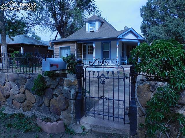 This turn of the century home has lots of potential. Situated on a corner lot in a quiet neighborhood, there is a covered porch wrapping around two sides of the house. This is a great fixer-upper with 1 bedroom and 1 bathroom. Recently remodeled bathroom has a clawfoot tub. Finished attic/loft with a non-conforming bedroom is perfect for a guest area. There is a private back patio area with a chicken coop. Appliances include refrigerator, washer and dryer. Sold as is. Located close to I-25 and various businesses. Minutes away from downtown and Penrose hospital.
