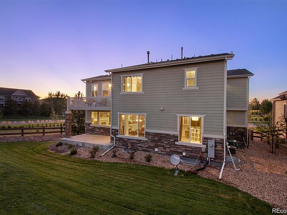 You won't want to miss this stunning two story former model home near Aurora Reservoir nestled in the heart of the award-winning Southshore community. This four bedroom Century build is situated on a corner lot across from the unmatched community clubhouse with a pool! The floorplan is bright & welcoming with two-story ceilings, a curved staircase, beautiful wood flooring, and an open-concept kitchen. In the kitchen you’ll find GE Monogram range appliances, granite countertops, gas range, walk-in pantry, plenty of space for everyday dining and a large island that can accommodate additional seating. Cozy up by the gas fireplace in the adjacent living room with built-ins. The formal dining room is near the kitchen making this a fantastic home to host gatherings! You’ll enjoy THREE outdoor patios, including a side patio with two-sided gas fireplace. Upstairs, the primary suite boasts statement coffered ceilings, fireplace, a private balcony overlooking the backyard and an attached five piece bathroom with separate vanities, DOUBLE shower and a large soaking tub. Doing laundry is a breeze with access to the laundry room from the primary suite’s walk in closet. Three additional bedrooms with new carpet and two full bathrooms round out the upper level of the house - providing ample space for working from home or hosting guests. Add your own personal touch, build equity & expand your living space by finishing the large basement, or use it for storage. Located in the coveted Cherry Creek School District, the Southshore community offers resort style amenities including two large community centers (one only walking distance) with pools, trails, parks and access to the Aurora Reservoir.