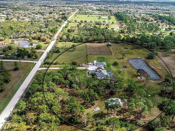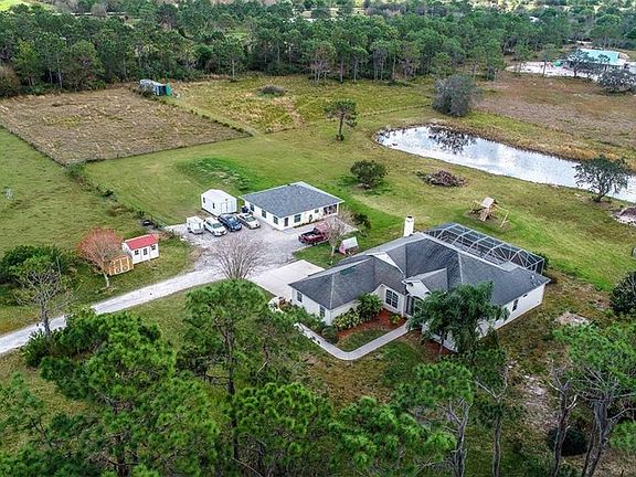 Head East just a few miles from the city & trade in the sounds of honking horns for life's simple tones of chirping birds & soft neighs. Here you'll uncover a 10 acre estate that indisputably offers it ALL. Cross the threshold to country living but retain the convenience & access to the essentials. The bird's eye view captures the essence of pure privacy. Neighboring properties lie far beyond the bounds of the tree line. 10 enclosed acres portioned to 5 fenced in pastures, a 4 stall barn, chicken coop, fully stocked pond, a 2 bed guest house, playground, 3 sheds, & a long gated driveway. Want more? Enjoy the pool and patio to watch the sunset's reflection cast off the pond waters. Inside you'll appreciate the 4 beds w/den. Open/split plan w/ formal dining & living spaces, great rooms w/ eat in space in kitchen that all overlooks the pool & greenscape of Myakka living. The guest cottage (2015), offers the perfect space for family, friends, or even a business center. Just over 1,000 sqft, it offers 2 beds/1 bath, generous storage, handicap accessibility, a large lanai, a rustic motif curtailed w/ gorgeous wood tile & chic cabinets. Sweeten the pot! Animal lovers, as soon as you close, start tending the livestock- 7 goats, 4 chickens, 1 cow. Enjoy the organics of fresh eggs, goat milk & a serenity that soothes the soul. Of all the paths you take in life, make sure at least one is down a dirt road. Schedule a private showing today & discover the treasures that lie beyond the settling dust of the 'East Manor'