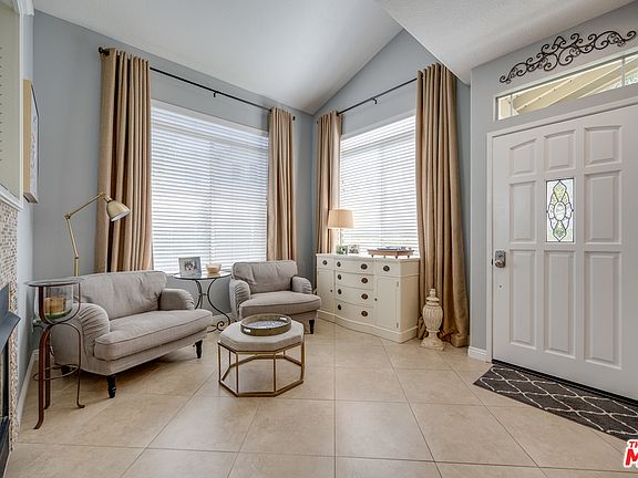 This gorgeous and spacious 3 bedroom, 3 bathroom townhome in the Montana Community is in the Valencia Northbridge area. This is an end unit with only 1 common wall, with a private grassy, enclosed front yard. The spacious private back yard has a spacious patio. It features tile floors, draperies + blinds, dual pane windows, custom tile fireplace, built-in sound, open floor plan, washer/dryer, new AC unit. The kitchen has white cabinets & stainless appliances with a custom tile back splash. It has a private master suite with dual bathroom sinks. It's lite and brite because it gets south, east and west sun. 2-car, side-by-side attached garage with extra storage has direct access into unit. Amenities include sparkling the pool, guest parking, and dog park area.