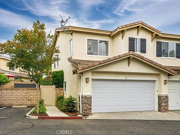 Welcome Home! This beautiful Valencia complex is sought after. Desirable end unit boasts a wraparound yard and private, gated entry. Featuring 2 Bedrooms plus a loft and 2.5 bathrooms. Both bedrooms upstairs have their own full bathrooms. Well-appointed with tile floors, beautiful kitchen and shutters throughout. 2 car attached garage. Conveniently located near The Bridgeport Market Place with shopping and restaurants. Low HOA and no Mello Roos.