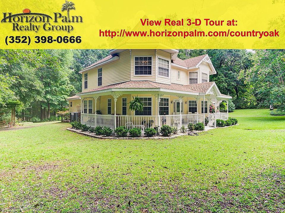 View Real 3-D Tour at: http://www.horizonpalm.com/countryoak Picture perfect Victorian home is a quiet haven showing all the beauty of Florida's nature coast! Live in elegant country style in the impressive County Oaks Estates. Road is paved and surrounded by majestic oaks for wonderful privacy. All bedrooms are decently sized and feature deep closets. For maximum comfort, plush, ivory carpeting enhance the living, and bedroom areas. Kitchen is open and has breakfast bar, great for a quick bite. Snuggle up on those chilly nights around the gas fireplace. Stay cool knowing you have 2 a/c units. Perfect location for a sunset dinner is your own enclosed porch area with soaring glass windows. Equipped with a barn, and a great area for a horse. Don't take our word for it this home speaks for itself! Start enjoying the finer things in life and indulge in this beautiful home!