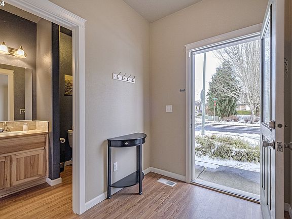 Charming starter home on a coveted corner lot. Perfect for first time home buyers. Step inside and be greeted by tall ceilings that create an open and airy atmosphere, enhancing the overall sense of space and comfort. The home has been maintained well, almost like new. Kitchen offers stainless steel appliances and beautiful wood cabinetry. The living room has ceiling fan and a gas fireplace for cozy evenings in. Primary bedroom has vaulted ceilings. Laundry on upper level near bedrooms. Heat pump with AC included. Enjoy the backyard deck in the summer. There is a small side yard for your furry friends. Fully fenced yard and garden shed out back for storage. Short walk to Forest Grove downtown farmers markets or use the aquatic center located in close vicinity as well as Pacific Unv. Could be a good investment property too. Home qualifies for 100% USDA. Turn key and move in ready!