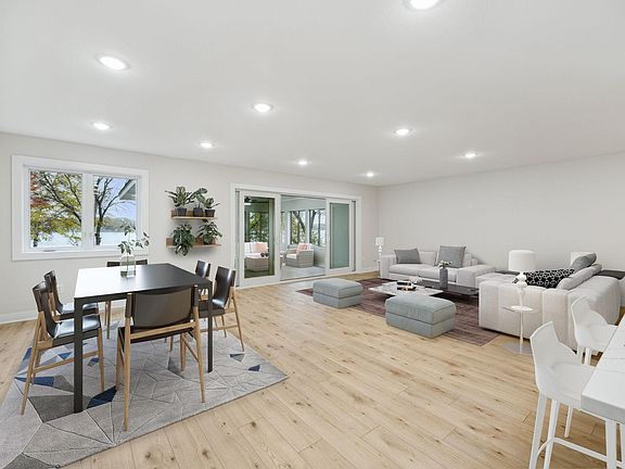 Welcome to a meticulously remodeled dream home, where no detail has been overlooked. This 3BR/3BA gem has been completely renovated from floor to ceiling, ensuring a modern & luxurious living experience. Step inside to discover a spacious interior featuring a stunning kitchen w/granite countertops & a waterfall center island, along w/stainless steel appliances. The elegance continues w/white trim, solid 3-paneled doors, plush carpet & LVP flooring. Natural light floods the living spaces through energy efficient Thermotech windows, including a 10-foot slider that leads to a four-season porch, perfect for relaxation & entertainment. The exterior of the home is equally impressive, w/LP smart siding & vinyl, & a concrete patio ideal for outdoor gatherings. For those who appreciate space for their vehicles and hobbies, this property offers the best of both worlds w/a 2-stall attached garage at the front & a Spancrete garage on the backside. But the true highlight is the 200 ft of lakefront