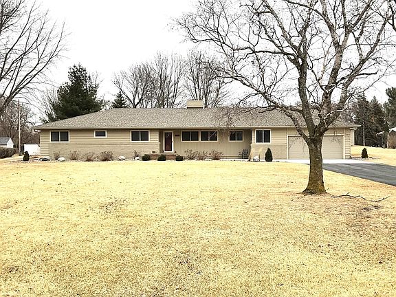 Spectacular, spacious 4BR 2-bath Ranch on gorgeous half acre lot in secluded edge of town NW neighborhood. Has hardwood floors, three wood burning fireplaces, huge living/dining room, eat in kitchen, main floor family room, sun room, primary bedroom suite and 4th bedroom/office all on main floor. It boasts updated bathrooms, all new mechanicals with two new furnace/AC units, lovely patio, nicely landscaped yard, new roof and large attached double garage. With wonderful curb appeal this home has 2400+ square foot on main floor and a full, ready to finish lower level. Check out this fantastic family home.