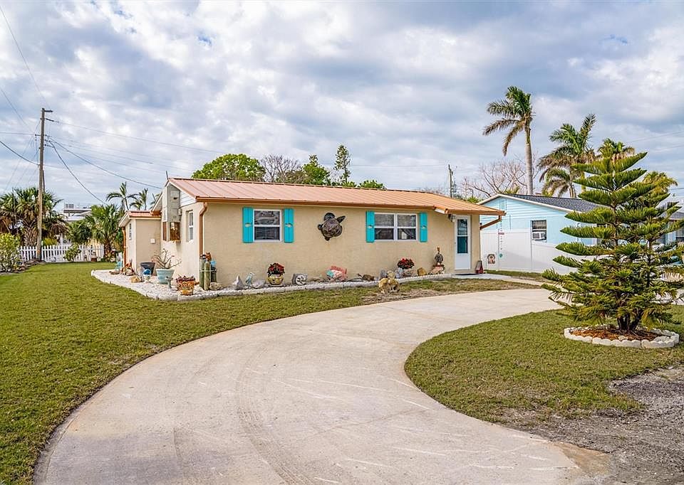 Flood insurance has been pre-paid until October of 2026 with only a $200 deductible ($87,200 in coverage). This 2-bedroom, 1-bath beach bungalow is on a quiet dead end street walking distance to the beach. This home has been thoughtfully restored and updated after recent storms, blending classic coastal charm with modern touches. It's the perfect escape for a snowbird, homeowner, or a savvy investment with monthly rental potential. The interior features brand-new waterproof epoxy floors designed to mimic the elegance of terrazzo—perfect for sandy toes! The remodeled kitchen boasts brand-new appliances and beautiful quartz countertops. Additionally, the bathroom has been remodeled with a large walk-in shower. Out back, you’ll find a spacious 300 square foot Florida room with PGT Eze breeze vinyl windows and great backyard ideal for entertaining, BBQs, or simply unwinding in the sea breeze. This home has the option to be on the priority wait list for a boat slip on a canal just a few houses away. Move-in ready and waiting for your personal touch—make it your own slice of paradise!