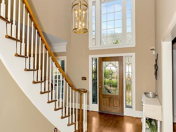 LARGE 3 CAR GARAGE! Southern Colonial Estate on a private lot, surrounded by scenic woods & ridges. Welcome your guests through the gracious southern living front porch leading to a grand curved staircase, tall ceilings & ornate trim. Through the foyer is the first of 3 living rooms, w/ built-in cabinetry & a double sided fireplace. Bright & cheerful sunroom. The 1st floor master suite boasts a well appointed spa, walk-in closest, built-ins, beautiful ceiling & double sided fireplace. Chef's kitchen w/ TONS of storage, solid cherry cabinets & granite countertops. Upstairs you will love the 4 oversized bedrooms w/ 2 jack & jill baths. Zero Step Daylight Basement w/ guest suite & bonus room.