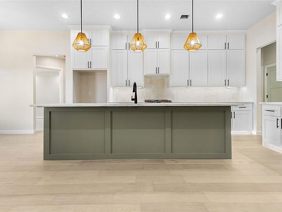 You will love everything about this stylish modern farmhouse designed home! Open floor plan with light wood floors, custom cabinets with incredible Kitchen featuring stainless appliances which include a commercial grade gas range. HUGE island for additional seating, serving, and storage. Double Fr. doors lead you into the Study / Home Office. Large living room features a gas log fireplace, and tall windows look onto the expansive covered patio. Owner's retreat features large tile shower with separate free standing soaking tub plus HUGE walk-in closet. One guest Bdrm with half Bath is set apart from others, while guest Bdrms 3 & 4 are divided by private vanities, and a common tub shower room. Designer lighting, plumbing fixtures, and hardware. High efficiency central gas heat / electric air, & gas hot water. Extend your living & entertaining space to the covered patio with spacious "pool sized" back lawn. Full sprinkler system, landscape, & wood privacy fence. One year building warranty.