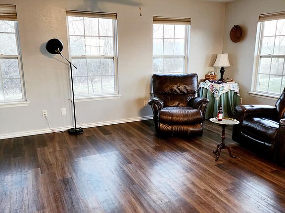 Experience country living at it's finest! With 29.1 acres and no restrictions,this is the perfect place for your hobby farm. This beautiful 3 bedroom, 2 bath home includes a bonus room that could be used as a 4th bedroom. This charming home features vaulted and tray ceilings, complimented by a large, climate-controlled sunroom. The property offers a storm shelter for enhanced safety, and a spacious 20x30 garage complete with a built-in office. Adding to its charm are two meandering wet-weather creeks.This is the perfect blend of comfort, functionality, and natural beauty in a country setting.