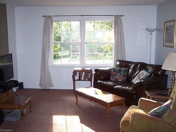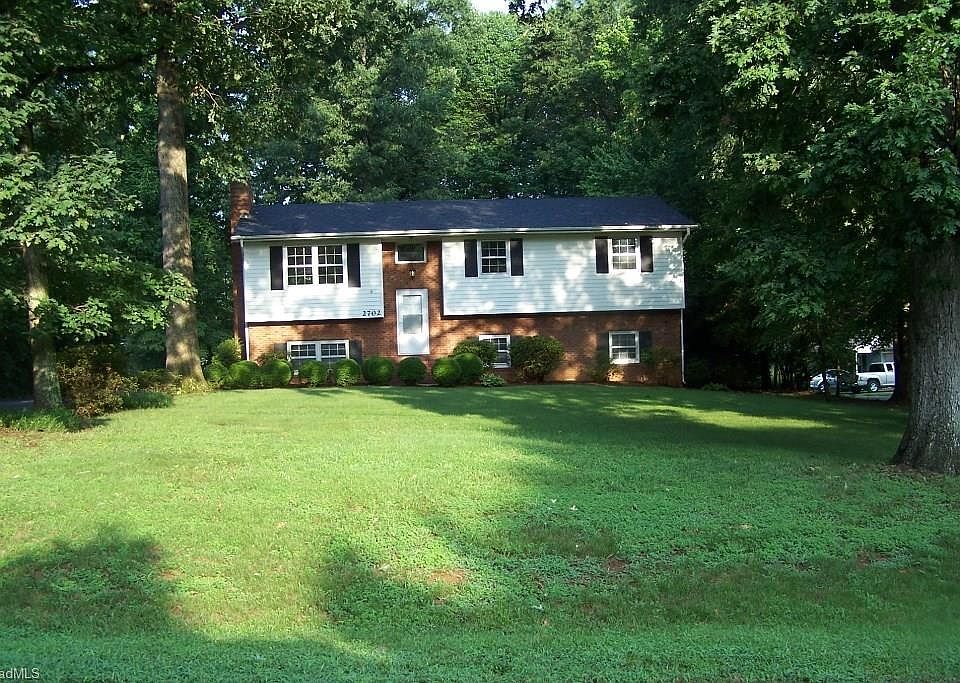 Greensboro 5 bedroom 3 full baths with lots of square footage for the money! Large deck and large patio overlook fantastic .82 acre yard with beautiful mature trees. Updates include carpet, interior paint and master shower. Eat in kitchen features breakfast area and tile flooring. Nice size downstairs den with brick fireplace exits into shaded backyard. Full bath and workshop area in lower level also. Low maintenance brick & vinyl exterior. County Taxes!