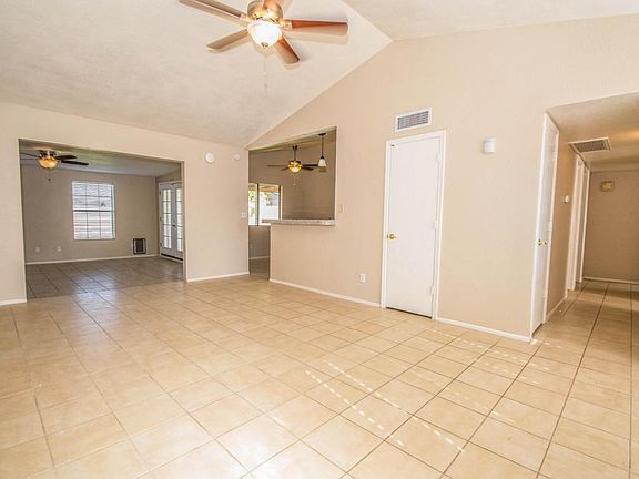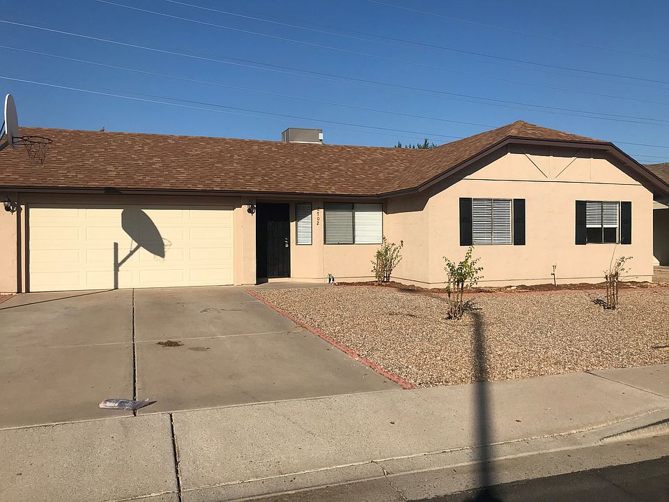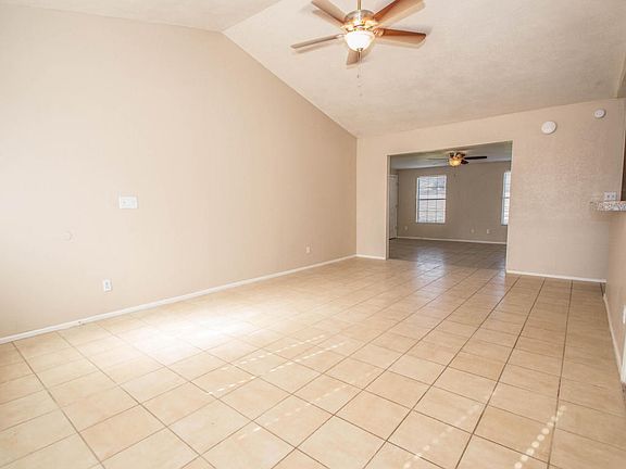 Situated on ideal North/South exposure, this stunning 1,568 square foot home features a 2-car garage, soaring high vaulted ceilings, upgraded light fixtures, a 14 SEER A/C unit, a soothing neutral color scheme, and offers 4 bedrooms and 1.75 bathrooms with a split floorplan master suite to include a spacious walk-in closet. The open and airy kitchen boasts sleek stainless-steel appliances, a refrigerator that conveys, and granite tile countertops. This beautiful home has inside laundry and a washer and dryer that convey with the property! The backyard embodies an extended covered patio, fresh green grass, and plenty of room for entertaining!