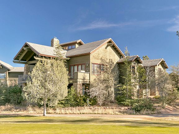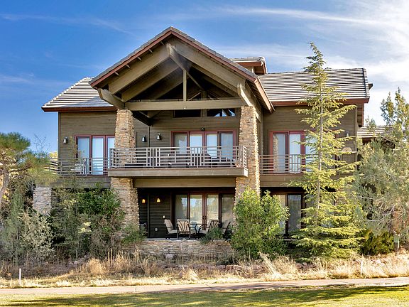 This rustic elegant mountain home is the perfect 4 bedroom/4 bath home nestled in between the 10th fairway, with mountain, golf and water views and walking distance to the clubhouse! The perfect combination of privacy with close proximity to club amenities, this elegantly appointed home's main level features walnut floors, vaulted beam ceilings and gas fireplace encased in stone and spacious outdoor living with a covered deck which has a built-in BBQ. Downstairs, there is a large living area with pool table and shuffle board, wet bar with glass shelving, ice maker, wine cooler and dishwasher. The two guest suites are split and both feature access to the patio and en suite baths for the utmost privacy for guests. This home is the perfect retreat at The Rim Golf Club!
