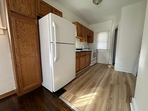 Freshly painted home with refinished wood floors. Two beds, one bath on each level. Laundry hookups. Fridge/Range included.