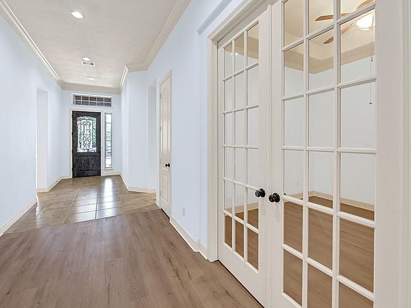 Welcome home to effortless elegance in the master-planned community of Cinco Ranch Northwest, zoned to top-rated Katy ISD schools including Jordan High. This stunning 1-story former Trendmaker model home sits on a cul-de-sac with no back neighbors. Inside, you'll find an inviting open-concept layout with tall ceilings, crown moulding, luxury vinyl plank flooring, and no carpet. The granite island kitchen showcases rich cabinetry with intricate moulding, stainless steel appliances, and a gas cooktop, opening to the spacious living area with a gas log fireplace; perfect for entertaining. A private home office, powder room, and in-home utility room add convenience. The primary suite boasts dual sinks, a vanity area, jetted tub, and separate shower. Enjoy relaxing evenings on the covered patio overlooking your private backyard. Experience comfort, style, and the vibrant lifestyle of Cinco Ranch Northwest.