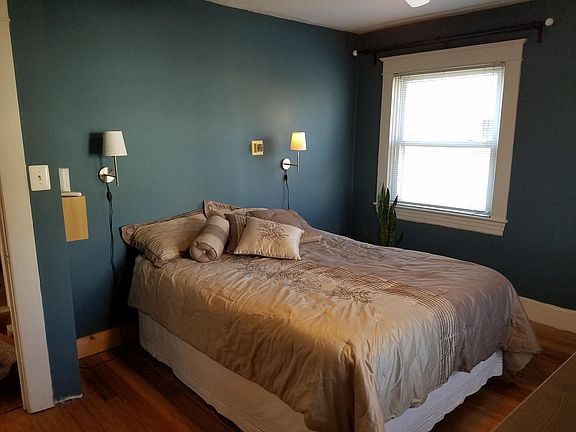 Bright sunny 2nd floor 1 bedroom apartment featuring private entrance, in-unit full sized washer and dryer, and central a/c units with remote control. Complete kitchen including dishwasher, garbage disposal, and an over the range microwave oven with exhaust to the outside. Updated electrical with lots of outlets throughout. Plenty of closet space. Hardwood floors throughout. Remote control ceiling fan in the bedroom. Large bathroom with extra-large ceramic tile shower (with seat) Tenant responsible for gas and electric service. Landlord pays water bills.
