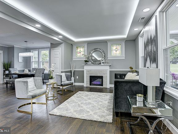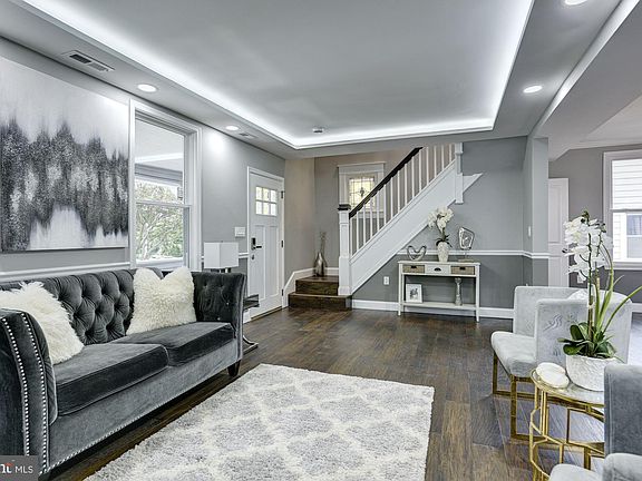 Stunningly renovated Bungalow in the Lauraville community of Baltimore! Enter into the main level by way of the front porch and experience cove lighting, electric fireplace with mantle, stained glass windows, chair railing, crown molding, and gorgeous hardwood floors. Let the gourmet kitchen inspire your inner chef boasting a center island breakfast bar, pendant lighting, stainless steel appliances, Chevron pattern backsplash, and quartz counters. Relax and unwind in the primary bedroom suite that offers a neutral color palette, sizable closet, and ceramic tile walk-in shower. Three spacious bedrooms and a full bath with soaking tub and modern fixtures complete the upper-level sleeping quarters. The fully finished lower level provides beautiful tile flooring, a wet bar with a glass tile backsplash, wine storage, beverage cooler, and quartz counters. Enjoy morning coffee or tea on the sizable deck that overlooks the landscaped grounds and partially fenced yard. Major commuter routes include Harford Road, US-1, I-95, and I-695.