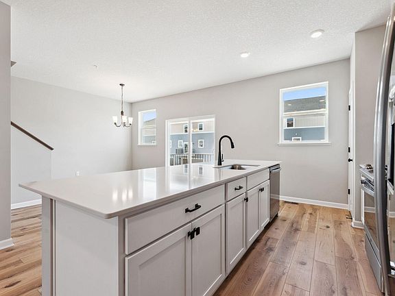 Welcome to this stunning 3-bedroom, 2.5-bathroom Dylan townhome under construction in Lakeshore Park. This new construction home offers a modern design and thoughtful amenities for comfortable living. As you step into this 3-story home, you are greeted by an open floorplan that seamlessly integrates the kitchen, dining area, and living space. The kitchen features a spacious island, providing ample countertop space for meal preparation and entertainment. Relax in the spacious owner's suite that boasts an en-suite bathroom with a dual-sink vanity and large shower. There are two additional bedrooms and hall bath. There’s a separate rec area at the ground level, which is perfect for cozy movie nights.