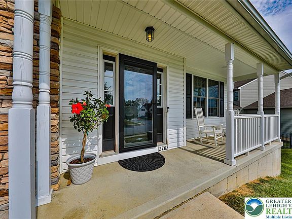 Situated in the sought after Eagles Landing, this stunning 5 bedroom colonial is one of the largest lots in the neighborhood. The thoughtfully designed layout provides an inviting feel the moment you step inside. The open concept chef quality kitchen offers stainless steel appliances, gas cooking, granite counter tops with overhang for seating, pantry, a large center island, and the extra bump-out breakfast nook with walls of windows and sliding doors that lead to a deck. A spacious and sun filled family room features brand new flooring and cozy gas fireplace. The Formal dining room is decorated with raised panel molding, and across the hall is a flex space perfect for den or office. Half bath and laundry room complete this floor. Upstairs is expansive with four bedrooms, plus a large finished room above the garage makes a perfect 5th bedroom or rec room. The exquisite primary bedroom suite has two walk in closets, and a luxurious bath with dual vanities, soaking tub, and glass enclosed shower. The basement is plumbed for a full bathroom and has an egress window, ready for your finishing touches. Incredible space in this back yard is a rare find, and you will enjoy relaxing on the deck overlooking a private oasis. Tuskes park is nearby with playground, walking path, basketball court, sports fields and more. This home has public utilities, & conveniently located only minutes to grocery stores and shopping centers, and located in the very desirable Nazareth School District.