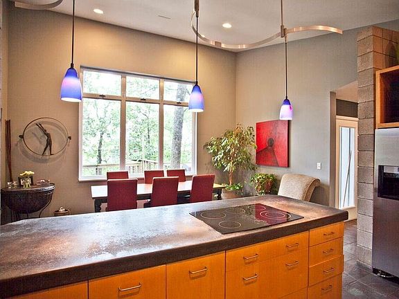 Spectacular one-of-a-kind home. Sits high on the hill for beautiful views of the city & beyond. Designed by owner architect itGs a work-of-art inside & out. Features include slate & refinished wood floors, custom kitchen cabinets & concrete counter tops, cathedral ceiling & gorgeous wood burning fireplace in living room, spacious master suite w/large walk-in closet, walk-in shower & whirl pool tub & many built-ins. the Sellers are currently redesigning the back yard.