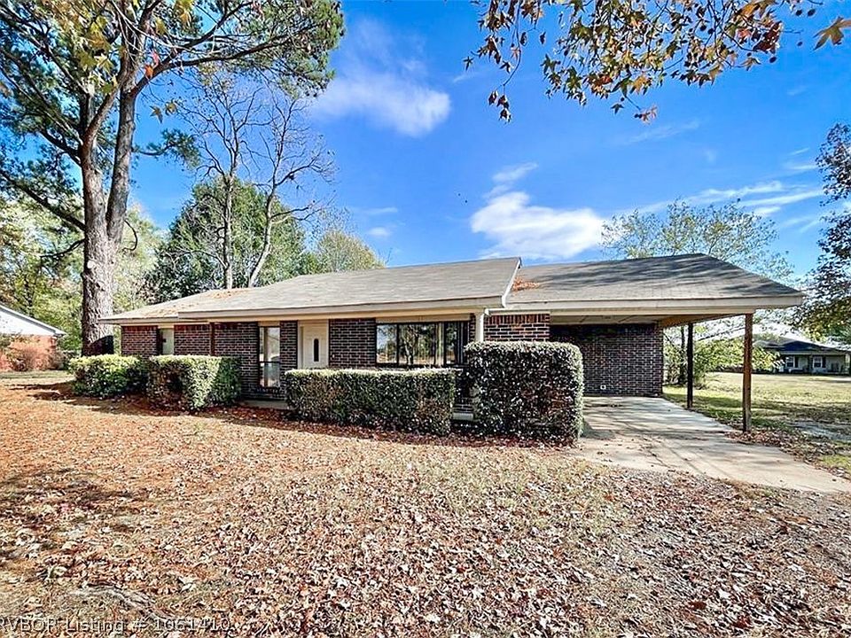 2 bed 2 bath brick home sitting on 1 acre. This home is built on a slap and features new roof, new stove and hot water, large mature trees, covered back patio area, and a carport. Inside you will find a large living area where a wall could potentially be built to add a 3rd bedroom.