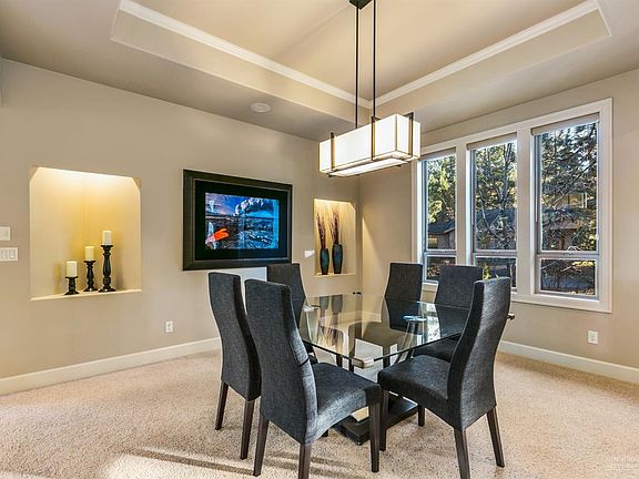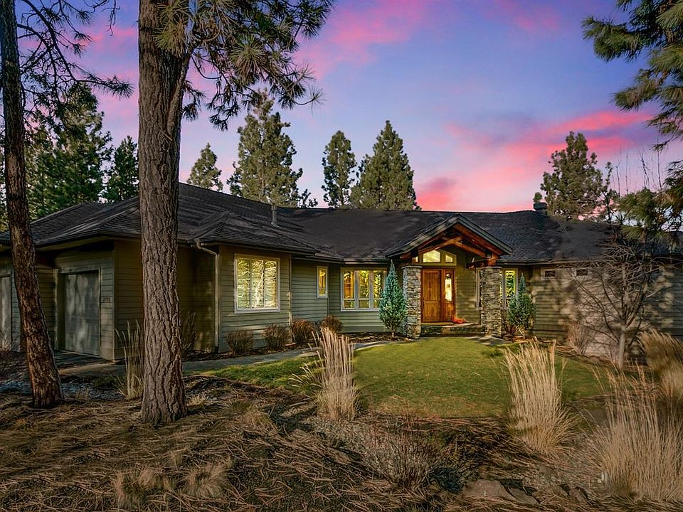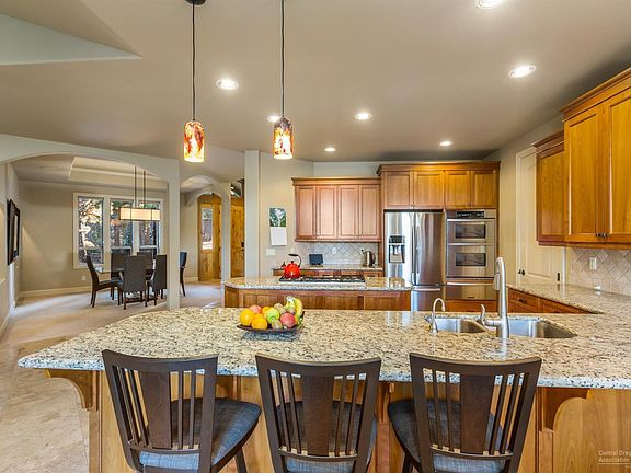 Nestled among the trees on half acre in the prestigious golf community of Awbrey Glen lies this immaculate home with open living space. Beautiful travertine flooring greets when entering the beautiful large wood door. Gourmet kitchen opens to great room and deck. Single level living feel with extra bedroom, full bath and bonus on lower floor. Bonus room could be used as 5th bedroom. Home automation, surround sound, and security system make this a tech ready home. Spacious insulated 3 car garage.