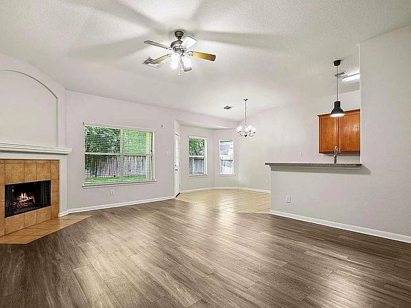 Charming one-story, 3-bed, 2-bath home in Parkway Oaks Community. This home is ready for move-in with an open concept vibe for the family. Large family room with fireplace opens to kitchen and breakfast area . Split floor plan for added privacy in the primary bedroom. Open backyard with a covered patio perfect for outdoor dining and relaxation .Two-car garage with a double-wide driveway. This home offers high peace of mind and is zoned to excellent Katy schools, ensuring top-notch education for your family . NEVER FLOODED. Easy access to I-10 and 99. Don't miss out on this opportunity for comfortable and stylish living in a highly desirable community. Whirlpool appliances, including the washer and dryer. Section 8 Welcome!. Come to Home Sweet Home