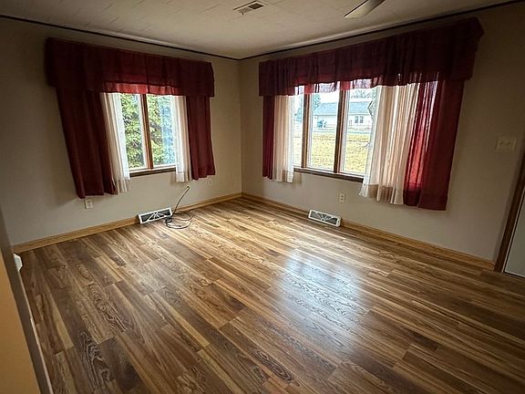 Charming 4-Bedroom Home on 1.5 Acres with Heated 3-Car Garage & Workshop! Located just outside of town, this well maintained 1.5-story home sits on a spacious double lot (1.5 acres) and offers a heated, insulated 3-car garage with a workshop-perfect for hobbyists or extra storage. Inside, you'll find 4 bedrooms (2 on the main level, 2 large upstairs) and 1 updated bathroom, along with numerous upgrades completed in the last five years, including a remodeled bathroom (shower & tile), updated kitchen with new countertops, sink, and backsplash, plus new laminate flooring and carpet throughout. The home features Andersen replacement windows, updated siding, roof, soffit, fascia, gutters, and a new well pressure tank. HVAC system is just 8 years old. Enjoy outdoor living with a partially fenced yard, 20x30 front patio, shed, and a gazebo. Move-in ready with modern updates- Call for your private showing today!