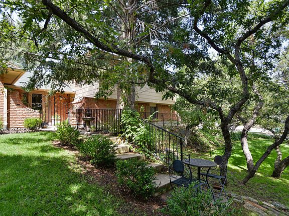 Enter along the walkway that leads to a lovely rod iron gated courtyard entrance and notice how secluded you feel from the neighbors. Beautiful hardwoods on the main level with a very inviting living and formal dining area, with lots of windows and light. Kitchen has stainless appliances and a gas stove, decorative French tile backsplash, oak island and walk out to lovely gardens out back. This four level home has a nice family room one level below with a brick fireplace and walk out to the private fully fenced backyard. Upper level has 3 good size bedrooms and 2 baths. Lowest level great for rec room, 2nd family room, or theatre room. Additional bedroom and/or office with built ins on this level as well. Very private treed lot with great views. This is a great house priced to sell with a little TLC could be the best one on the block. Assessor shows 3141 SF, old MLS shows 3307 SF. Buyer to verify square footage.