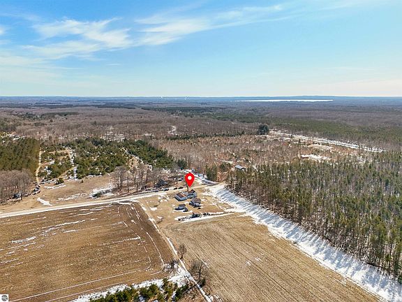 The property features a spacious 2-car garage (43x24), ideal for storing your vehicles and equipment,along with a 24x24 workshop, wood kiln, tractor sheds and a horse barn with electricity. A garden shed with concrete floor and electricity offers additional storage space for your tools and supplies. Embrace the agriculture potential with a 27-acre field, where last years crop of non GMO corn flourished. The mature mixed hardwoods, selectively cut over the past century, adds to the allure of this property. The towering pines provide a natural haven for deer, making it a paradise for hunting enthusiasts with large bucks taken every year. Surrounded by a convergence of thousands of acres of national forest, this parcel offers unrivaled seclusion and endless exploration. A massive trail system caters to every outdoor enthusiast, whether you enjoy snowmobiling, horseback riding, or ORV adventures. Despite its secluded feel, this property offers convenience with a short commute to Cadillac, Caberfae Ski lodge, Tippy Dam and other renowned fishing sites. Don't miss this opportunity to own a piece of paradise where tranquility meets adventure.