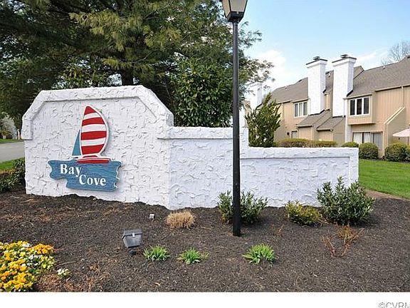 Low on maintenance - high on convenience! This two story townhome just south of Short Pump is close to shopping, dining and interstates, but far from the hustle and bustle. In addition to installing a new heat pump in 2013, the owner completely renovated the kitchen in 2011 with new cabinets, appliances and granite counter tops. It opens to a dining/living room complete with a wood-burning fireplace and sliding doors to the private patio. There are beautiful hardwood floors throughout the first floor. Upstairs there are two bedrooms, each with its own private, attached bath. The larger of the two rooms has a walk-in closet and spacious bedroom with soaking tub, new vanity and a skylight. The second bedroom has a double closet and vaulted ceiling. The laundry area is located on the landing of the second floor, easily accessible to both bedrooms. Two attached storage closets are located on the exterior of the property, and of course all of the exterior maintenance is provided by the association! You will love the sparkling outdoor areas of Bay Cove, including the lake, pool, and waterfront path! Spring is here - enjoy it from your new townhouse.