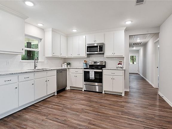 Come home to your completely updated farmhouse nestled among the established trees on 2 acres. This 4 bed 2 bath home is only a 12 minute drive to downtown Bryan. You can escape the city while being close to its conveniences. The spacious master suite boasts a large walk-in closet, and the master bath boasts dual farmhouse style vanities and a walk-in shower with a bench. Kitchen has BRAND new stainless appliances, new white cabinets, and granite tops. Renovations completed in the past 6 months include roof, septic system, windows, HVAC system, floors, paint, plumbing fixtures, lighting fixtures, countertops, cabinets, and more. This home is MOVE-IN ready!