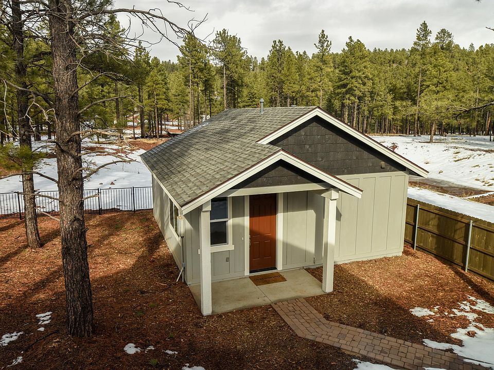 Beautiful guest house for rent on the west side of Flagstaff! The guest house has one bedroom, one bathroom, and a large walk-in closet with a washer and dryer. It has a modern design including stainless steel appliances, granite countertops, a subway tiled bath, tile floors in the living area, and carpeted bedroom. Comes with a dedicated parking space. The guest house is in the backyard of the property and the owners live in the main house. There will be no neighbors behind you, so you can enjoy wonderful views and direct access to the FUTS. Rent is $1700/mo. All utilities and internet are included. Available for move in immediately! Please contact me to schedule a tour, apply, or inquire about further information.