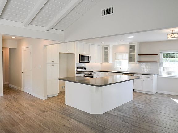 Welcome Home!! Entertainer's Delight!! Spacious & open floorplan - Immaculate three bedroom two bath single level home (stairs to entry) with LARGE yard and two car garage in Capistrano Beach! This Beautiful gem of a home is an ABSOLUTE MUST SEE!! Show stopping Clean and Bright kitchen with custom shaker cabinetry, quartz counter tops is complete with Kitchenaid stainless steel appliances (5 burner stove, built in microwave and dishwasher). The oversized island in kitchen is perfect for entertaining while looking out towards spacious living room boasting high wood beamed ceilings, three-sided fireplace as well as a GENEROUS sized deck! Enjoy custom neutral paint with 3" baseboards, porcelain plank & carpet flooring, custom doors, lighted ceiling fans in bedrooms, upgraded light fixtures and hardware. Bathrooms have been upgraded with quartz counter tops, and sleek bathtub/shower stalls. Full-size washer & dryer hookups inside the home. Incredibly LARGE side and two-tiered back yard to relax and enjoy much extended living space Easy frwy access. Close to shopping, restaurants, schools and parks. LOVE WHERE YOU LIVE!