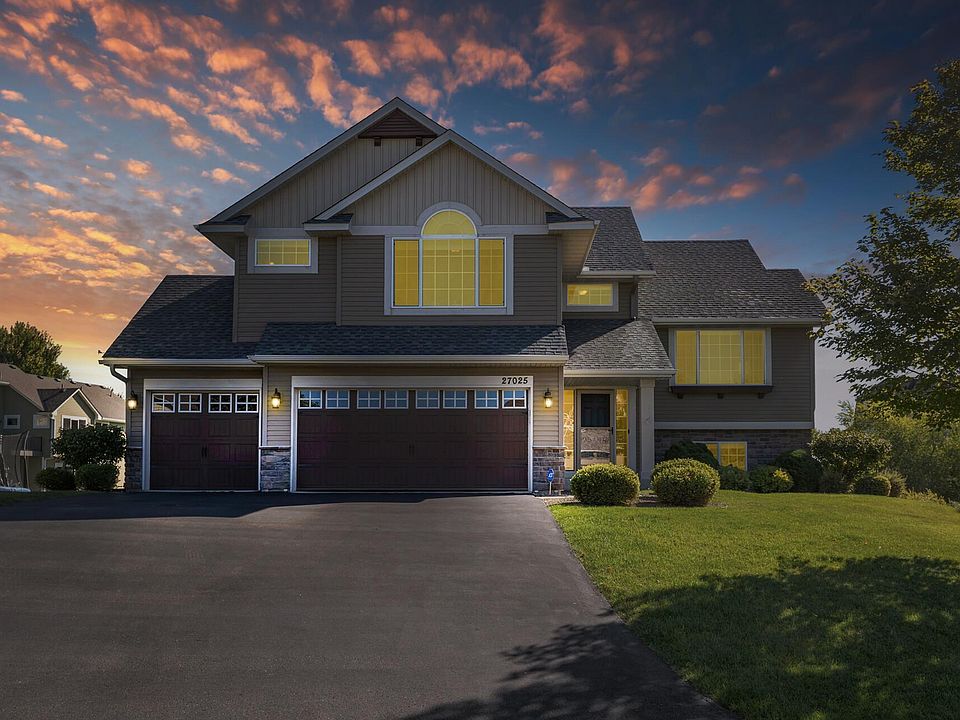 Nestled in the desirable Boulder Pointe golf course community, this beautiful 5-bedroom, 3-bathroom home offers the perfect blend of luxury, privacy, and convenience. With a newer roof and a maintenance-free deck, this property is built to last and ready for you to enjoy. The spacious floor plan includes a unique half-flight stair design leading to the private primary suite. This expansive retreat features vaulted ceilings, a large whirlpool tub, and a full en-suite bathroom, making it the perfect place to unwind. The home boasts a three-car garage, ideal for storing vehicles and a golf cart, allowing you to hit the nearby golf course whenever the mood strikes. The walkout basement, complete with a cozy gas fireplace, leads outdoors to a large patio—perfect for entertaining or relaxing while enjoying the serene surroundings.