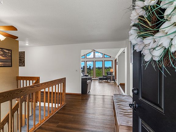 Experience the perfect blend of serene acreage living and urban convenience with this stunning property in a prime Sherwood location! Nestled on 6 acres, this expansive home boasts 5 bedrooms, 3 full bathrooms, and over 3,600 SF of living space. Tucked away on a private lane, you'll be greeted by territorial views and glimpses of majestic Mt. Jefferson. The property features a 1 acre Pinot vineyard, barn, and shop, offering a taste of the country lifestyle within reach of city amenities. The heart of the home is the vaulted living room with a floor-to-ceiling stone fireplace and a wall of windows framing the picturesque views. The dining area seamlessly connects the living room to the kitchen, which boasts new flooring, an eat-in bar, double ovens, a large pantry, a gas cooktop and an abundance of cabinetry. Step outside through the slider to the brand-new TimberTech deck, perfect for entertaining and soaking in the tranquil surroundings. The primary suite is a true retreat, with beautiful views, deck access and a remodeled bathroom featuring a tiled shower and a closet with custom organizers. The main level is complete with two additional bedrooms and a full bathroom. The lower level of the home provides additional living space with a family room, 4th bedroom, bonus room (could be the 5th bedroom), full bathroom and laundry room offering flexibility for all your lifestyle needs. Additional features include newer windows, roof, AC, siding, paint, a generator & more! Enjoy the shop with electricity and water. Along with the hobby vineyard, the property's cherry, pear, and apple trees add to its charm, while the expansive grounds & newly paved driveway are great for a sport court & other outdoor activities. Don't miss this rare opportunity to own a slice of paradise with the perfect blend of acreage living and modern convenience just 2.5 miles from Old Town Sherwood!