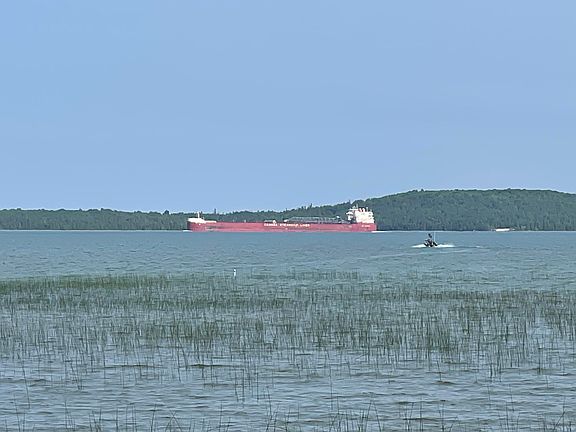 Located on Raber Bay with almost 100' of waterfront is this great cottage/getaway for fishing, boating, camping with freighter views, starry nights and family memories. The lakeside windows span from the kitchen to the master bedroom to watch wildlife and stunning sunrises. The large master bedroom has an ensuite and walk-in closet while the family room overlooks the covered porch and freighter traffic. The second bedroom has a Murphy bed with a full bath across the hall both with pocket doors. Enclosing the covered porch would add a third bedroom. The detached garage is approximately 27 x 31 with a concrete floor, workspace and includes the washer/dryer. Raber Area Sportsman's Club is nearby and hundreds of acres of state forestland is a short walk away.