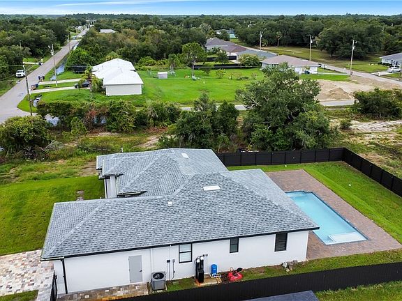 Welcome to your dream home in the most desirable area of Lehigh Acres! This stunning single-family home boasts 3 bedrooms, 2 bathrooms, and a 2-car garage. The modern kitchen features granite counters, stainless steel appliances, and 24'x24' tile flooring through the whole house. Step outside to your own private oasis with an in-ground pool, outdoor kitchen with gas stove, and fenced yard for ultimate privacy. The impact windows and doors provide security and peace of mind in addition with the zebra curtains and a camera system all around the property. The double sink in the master bathroom adds a touch of luxury to your daily routine. Built in 2023, this home offers all the modern amenities you could ask for. Conveniently located near the 82 road, you'll have easy access to shopping, dining, and entertainment. Whether you're relaxing by the pool or entertaining guests in the outdoor kitchen, this home is perfect for both everyday living and special occasions. Don't miss out on the opportunity to make this beautiful property your own!