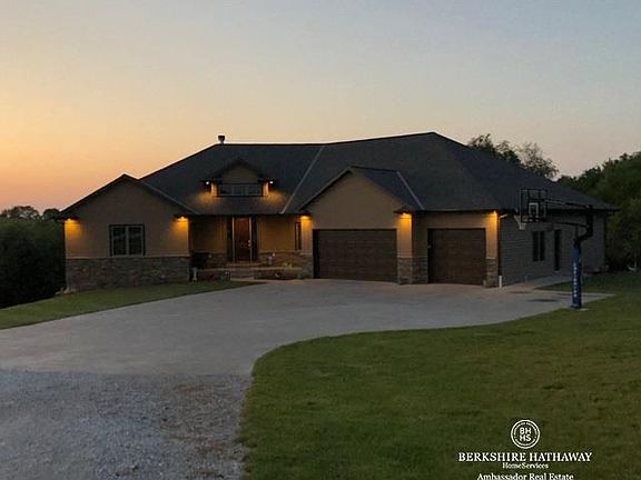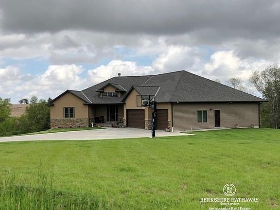 Only thirty(30) minutes from Lincoln or Omaha you will find this magnificent 5 bedroom walk out ranch on a private acreage.Close to 3,000 square feet above grade that has a gourmet kitchen with a hidden walk-in pantry, granite counter tops and tiled back splash. The master suite has a tiled walk in shower, jetted tub and double vanities. All of the bedrooms are big and all have walk-in closets. Lower level has an enormous family room with wet bar and game area. There is an in-law suite with a separate entrance that has a kitchen, 3/4 bath, bedroom and living room. It has first floor laundry with massive mudroom coming off the oversized three stall garage. Secluded maintenance free covered deck that walks down to an oversized patio behind the house. Not enough room? Okay, how about the insulated, heated and air conditioned 80 by 52 Astro building with drains 2 over sized doors and 50 amp service.