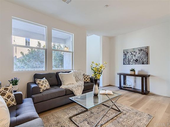 Incredible opportunity to own in the premium community of Eastlake Chula Vista! Wonderful open floor plan with light and bright sunlight streaming throughout. Large 3 bedrooms with two levels of living space. New laminate and carpet flooring and fresh paint throughout, this home exudes a modern and inviting atmosphere and carefree living. The spacious floor plan boasts ample space for comfortable living and entertaining.The upstairs balcony gets plenty of light and is perfect for al fresco dining and sunning. Community offers pools, spas and beautiful tree lined streets. The two car attached garage provides convenient parking and plenty of storage. Laundry room downstairs has extra storage and space for crafts and projects.