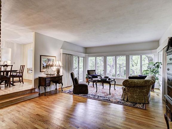 Nestled among towering shade trees on a parklike .6-acre lot in the Bassett Creek neighborhood you will find this stunning Mid-Century Modern walkout Rambler with serene views from virtually every room. You will love the vaulted four-season sunroom, gleaming hardwood floors, updated bathrooms, two cozy fireplaces and more. Outdoor spaces are amazing with a spacious deck, patio, custom stone landscaping with stone steps, and gorgeous flowers and shrubs surround this stunning home.