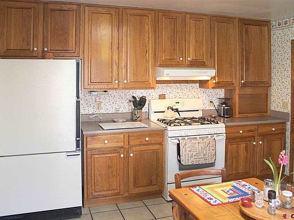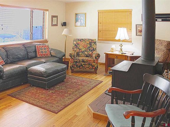 All brick single level home on a quiet street within walking distance to all three levels of schools. This 1211 square foot home has been well cared for and updated often over the years and it shows on the inside and out. It features 3 bedrooms, 1 bathroom, and a 1 car garage. Walking into this home from the large covered porch, you will notice the beautiful original hardwood floors and the oversized Fisher wood stove in the living room. Leading into the formal dining room there is plenty of china storage in the original built-in cabinets. Off the dining room is the kitchen which was thoughtfully laid out and features lots of storage in the upgraded hickory cabinets and pantry area. There is even a place of all your spices! The home comes with the gas range, dishwasher, and refrigerator. A glass door from the kitchen leads you to the 696 square foot backyard deck, which is perfect for grilling and entertaining. In addition to the deck, the backyard also features irrigated raised bed gardens, lawn area, and a 12 x 10 foot finished utility shed. This shed is finished and includes heat and electricity. It could be used for storage or as an office or shop. In addition to all of this, the owners have replaced the original windows with Pella low-E double pane windows and have replaced the forced air gas furnace within the last few years. These upgrades help keep heating costs to a minimum. The natural gas bills for the last 12 months have been a high of $71.70, low: $16.78 and an average of $35.00. Electric utility bills have been a high of $80.00, low: $35.00 and an average of $60.00. This home is very low maintenance. The exterior brick and metal roof will last a lifetime. The garage offers plenty of room for 1 car, plus an additional storage, laundry area and workshop. This home is located close to schools, parks and outdoor trails on Columbine Drive, north of Clovis Drive. The City of Durango features Fort Lewis College and Mercy Medical Center close to town. Durango has whatever you need and then some.