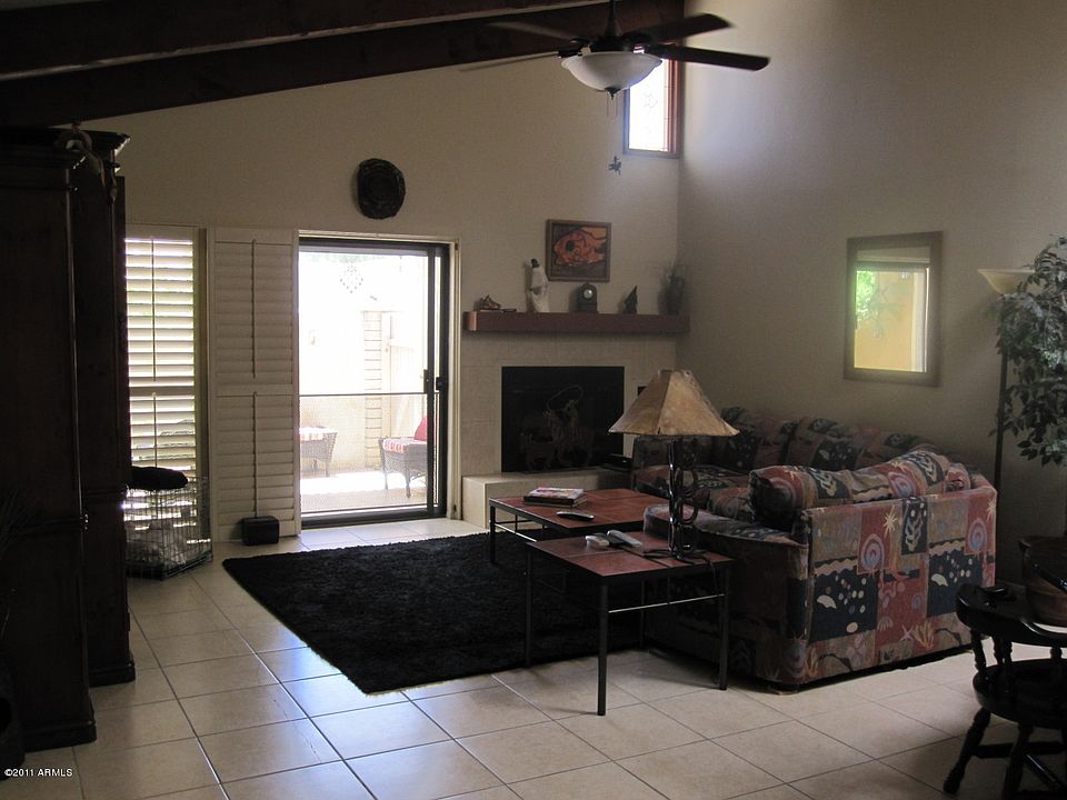 Hard to find spacious 2 bedroom single level with 2 car garage in Cactus Casitas. Bright open floorplan with vaulted ceilings. North/South exposure. Private backyard located near the large community pool.