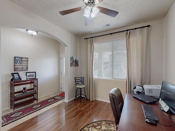 Come see this spacious DR Horton home with 4 bedrooms, AND an office/flex space! Low maintenance landscape and open floor plan make this home a must see for the buyer that needs some extra space. Cook's kitchen features an island bar, and beautiful granite countertops to compliment open living area. Upstairs you will find the large primary suite with huge walk in closet, and private, composite decked balcony. Perfect place to enjoy your morning coffee while you enjoy views of the city, and sunrise over the Sandias! 2nd floor also has large Loft, perfect for kids play room, or home theater. Come see what the Cielo Norte neighborhood has to offer.