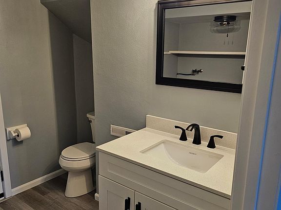 This completely remodeled and spacious split foyer is nestled on 1,800 sq ft in a quiet neighborhood boasting 4 bedrooms, and 1.5 baths. The large living room has a lovely bay window and fireplace. A beautiful kitchen with plenty of cupboards and counters that look out onto a pristine deck facing the woods. It has a detached two car garage and long driveway, so there is plenty of parking space. Relax in the separate family room and have fun in the rec area. Central air, heat, dishwasher, and other amenities await. Schedule your viewing today! 1 year lease No Section 8 No smoking Dog with additional security deposit One year lease required. No Section 8 No Smoking Dog ok with pet deposit