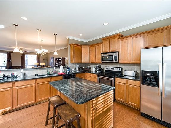 • Kitchen Features: Breakfast Bar, Cabinets Stain, Eat-in Kitchen, Pantry, View to Family Room, Stone Counters, Kitchen Island