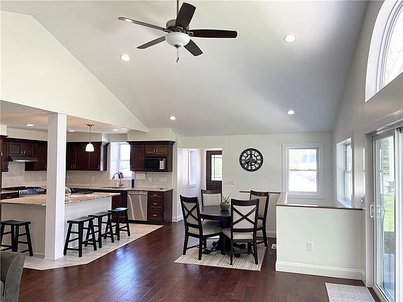 Incredible COMPLETELY remodeled home! Open concept, high end finishings all less than 6 years old, top of the line stainless steal appliances included, granite countertops, engineered hardwood flooring, vaulted ceilings upstairs and down, 1st floor master w/ on suite, in floor heat and jacuzzi tub, 1st floor laundry room, new huge garage w/ in floor heating, garage include upstairs bonus area w/ half bath, private backyard with access to six mile creek, finished basement w/ in floor heating.