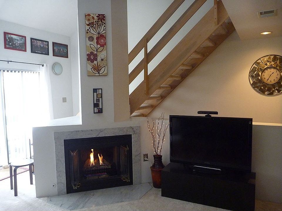 Welcome to the largest unit on the quiet street of Leona Lane. This home features a large balcony that includes a grill and an automated awning, perfect for entertaining guests on Summer days. High ceilings throughout with FIVE skylights brining in a tremendous amount of natural light, with motorized smart-enabled shading that may also be controlled via remote. The main bedroom includes a luxurious jet spray bathtub and extra closet space along with a WET BAR and kitchenette area. Main bedroom also leads out to a loft style office/workout area. Main Level bath also features a gorgeous soaking bath leading to the second spacious bedroom. It features a large walk in closet with expansive adjustable shelving. Relax in the living room next to the fireplace in your new home.Updated kitchen and bathrooms. Newer HVAC, newer skylights.